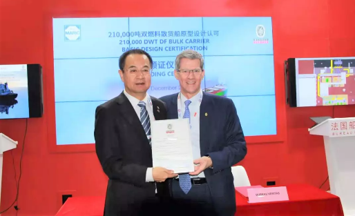 12月4日,法國船級社為中國船舶集團(tuán)七〇八所簽發(fā)21萬噸雙燃料散貨船初步認(rèn)可證書。