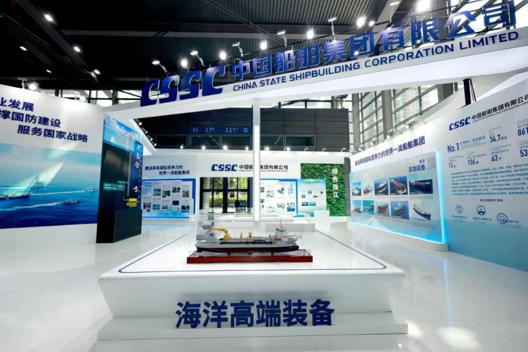 在大會(huì)的展示環(huán)節(jié),中國(guó)船舶集團(tuán)展臺(tái)通過(guò)集團(tuán)總體、海洋防務(wù)、海洋高端裝備、工藝技術(shù)創(chuàng)新發(fā)展、海洋經(jīng)濟(jì)新業(yè)態(tài)、工匠風(fēng)采、“奮斗者”號(hào)、綠色珠江八個(gè)板塊,分別展出了7500立方米液態(tài)二氧化碳運(yùn)輸船、半潛式全自動(dòng)現(xiàn)代化三文魚深海養(yǎng)殖裝備、合金鋼中間軸在大型油船上的首次應(yīng)用等55項(xiàng)創(chuàng)新成果,并展示了28位工匠代表的風(fēng)采。集團(tuán)公司展臺(tái)采用開(kāi)放、通透的布局,突出中國(guó)船舶品牌元素,集中展示集團(tuán)公司立足新發(fā)展階段,貫徹新發(fā)展理念,在戰(zhàn)略重組后以高質(zhì)量發(fā)展為主題,壯大主業(yè)實(shí)業(yè)、加快推動(dòng)船海產(chǎn)業(yè)向中高端轉(zhuǎn)型發(fā)展,以及大力弘揚(yáng)軍工精神和勞模精神、勞動(dòng)精神、工匠精神,強(qiáng)化自主創(chuàng)新的整體實(shí)力和在推動(dòng)低碳環(huán)保、區(qū)域經(jīng)濟(jì)發(fā)展等方面的最新成果。集團(tuán)公司還通過(guò)本屆大會(huì)“互聯(lián)網(wǎng)+展會(huì)”模式開(kāi)設(shè)的“云展會(huì)”,讓參觀者線上云游中國(guó)船舶展臺(tái),擴(kuò)大企業(yè)品牌影響力。
