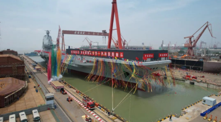 2022年6月17日,我國(guó)第三艘航母福建艦在江南造船下水。由我國(guó)完全自主設(shè)計(jì)建造,采用平直通長(zhǎng)飛行甲板,配置電磁彈射和阻攔裝置 ,滿載排水量8萬余噸,人民海軍昂首進(jìn)入三航母時(shí)代。