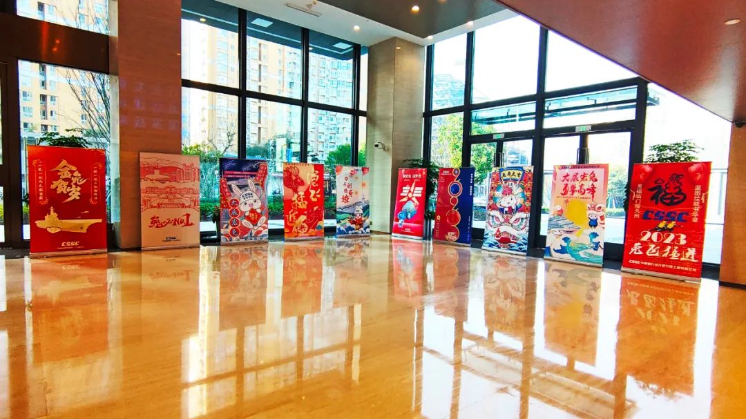 海報主體部分以國內(nèi)首臺深遠海浮式風(fēng)電裝備“扶搖號”為創(chuàng)意點,通過含有“大風(fēng)車”形象的寫意“春”字,表達中船海裝將在春風(fēng)浩蕩中大展宏“兔”,在向海圖強征程中矢志奮斗!