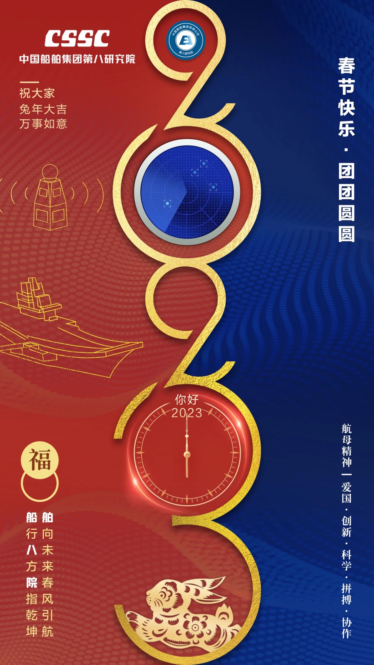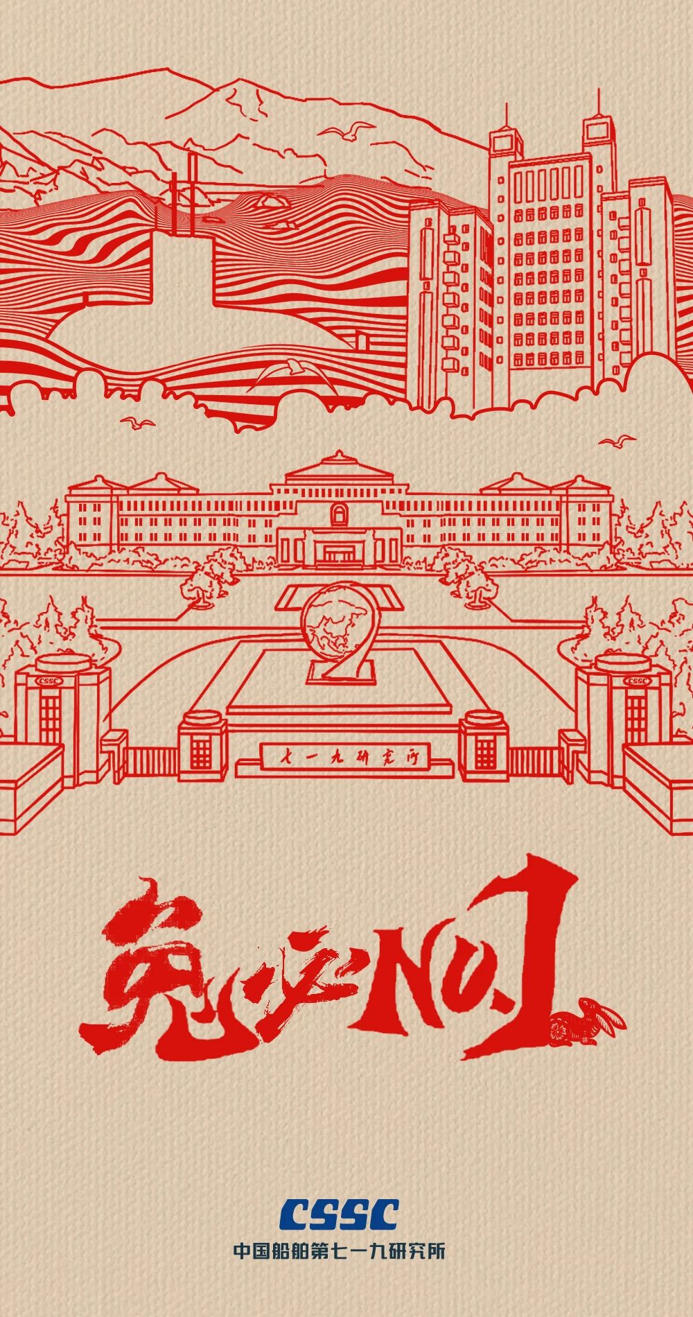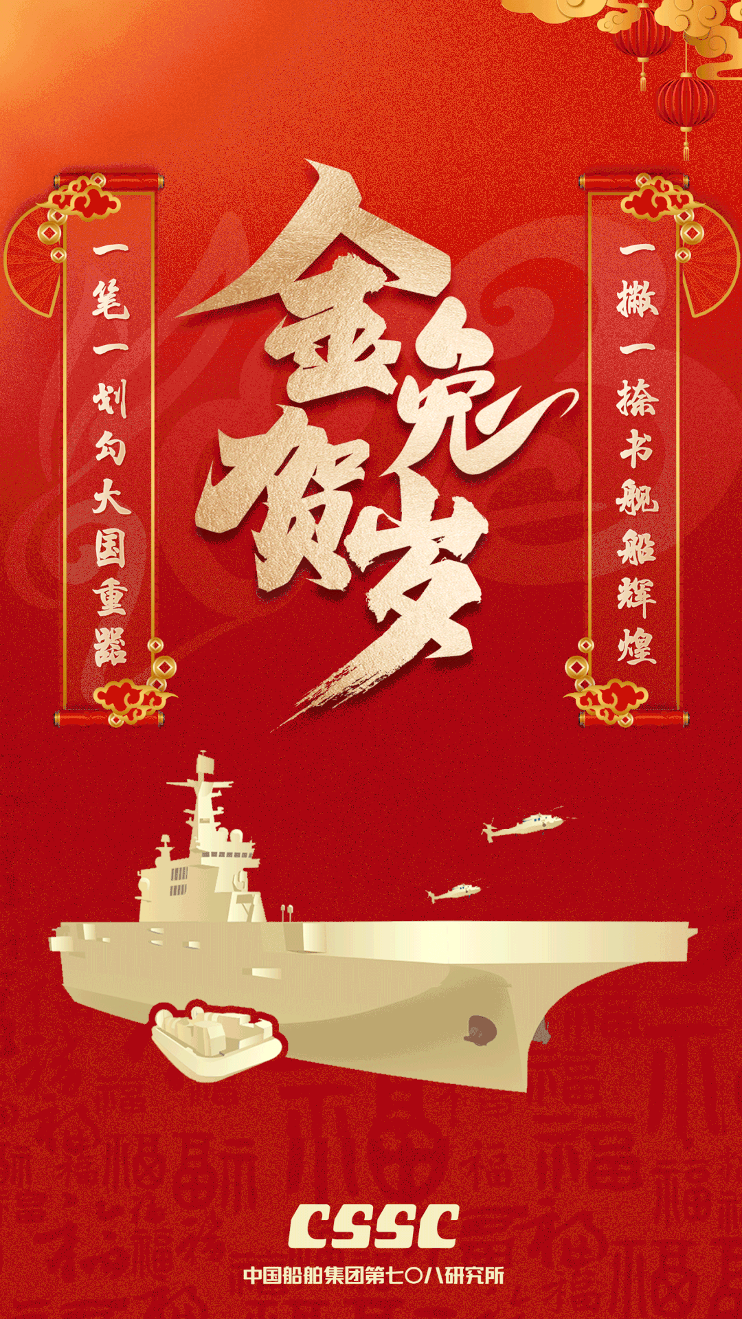 海報中所展現(xiàn)的元素,皆由大連造船元素組成,中間癸卯兔的頭冠裝飾以船錨、舵軸為主,下方航母在海中追風(fēng)逐浪,象征大連造船必將在新時代發(fā)展中踏浪前行。