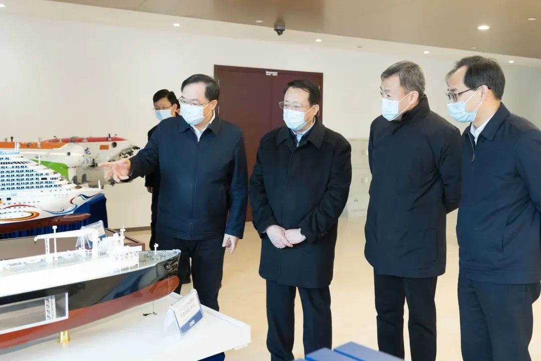 中國船舶集團總部于2021年12月遷駐上海,去年經(jīng)營業(yè)績再創(chuàng)新高。在溫剛、楊金成的陪同下,龔正察看了中國船舶集團重點船舶產(chǎn)品模型,深入了解中國船舶集團深化科技創(chuàng)新、實施重大項目,對標國際先進、夯實技術(shù)基礎(chǔ)等方面情況。