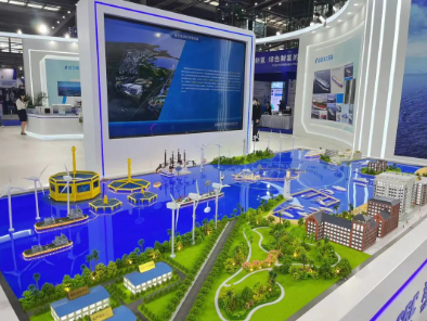 # 10萬噸級大型深遠(yuǎn)海養(yǎng)殖工船、2000噸自升自航式風(fēng)電安裝平臺、耕海一號二期工程等模型以及“藍(lán)色海洋經(jīng)濟(jì)綜合體”沙盤,生動展示出“深海養(yǎng)殖+海上文旅+海上風(fēng)電”互聯(lián)互通的繁榮業(yè)態(tài)景象;