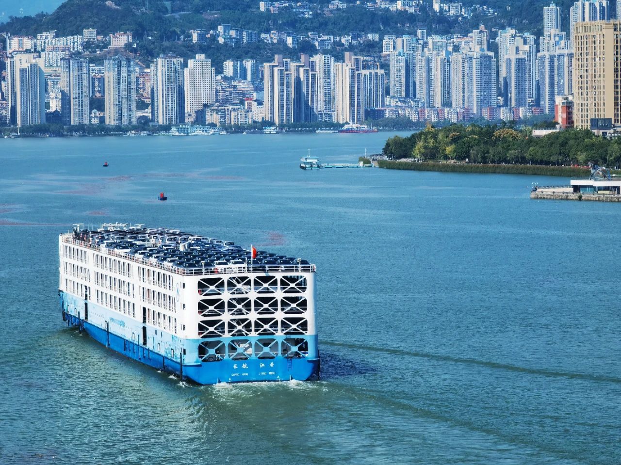 長江三峽庫區(qū)蓄水后的萬州,各種船只或??炕蚪?jīng)過,盡顯城市的繁忙又不失江城之美。