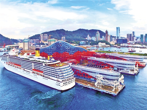 圖為蛇口太子灣郵輪母港??康膰H郵輪。(唐蜀全 攝)