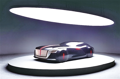 “新紅旗”概念模型車展現(xiàn)了新紅旗家族產(chǎn)品的統(tǒng)一設(shè)計語言。(楊忠陽 攝)