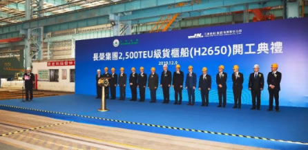 ????中國船舶集團所屬江南造船(集團)有限責任公司的2500TEU集裝箱船項目是長榮海運首次在中國內地訂造新船。該系列船入NK船級社,采用中國船舶集團所屬上海船舶研究設計院最新優(yōu)化設計,加裝最新的Scrubber脫硫裝置。該船總長195.00米,垂線間長191.80米,型寬32.25米,型深17.00米,設計吃水10.00米,結構吃水11.20米,設計航速不低于20節(jié)(NCR),貨艙內集裝箱數(shù)922箱,甲板上集裝箱數(shù)1725 箱,甲板上冷箱數(shù)226箱。該船計劃于2021年交付。