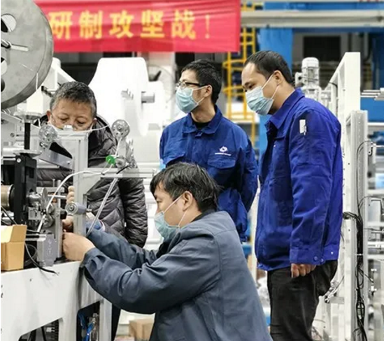 ????2月21日,平面口罩機(jī)樣機(jī)成功下線;2月27日深夜,首臺(tái)平面口罩機(jī)交付;3月5日,僅7天時(shí)間,產(chǎn)品先后發(fā)往中國(guó)石油(蘭州)、中糧集團(tuán)、哈藥集團(tuán)等6家企業(yè),輻射范圍涵蓋了我國(guó)西北、東北、華北、東南各地,以實(shí)際行動(dòng)完成了一次完美開局。