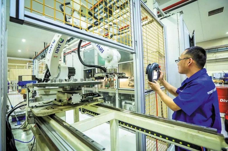 紅江工人正在監(jiān)控機(jī)器人生產(chǎn)情況。