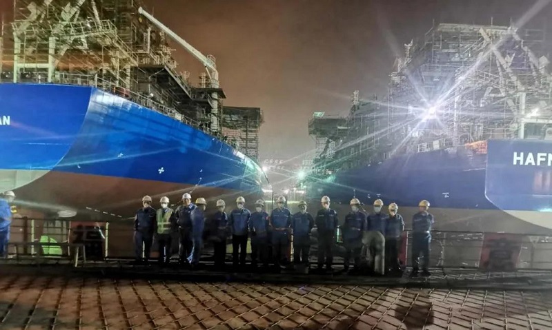 ????進塢后,兩艘船將進行主船體搭載包括主要設備吊裝、各系統(tǒng)完整及艙室報驗等工作,為吊裝、拼接、合攏做準備。