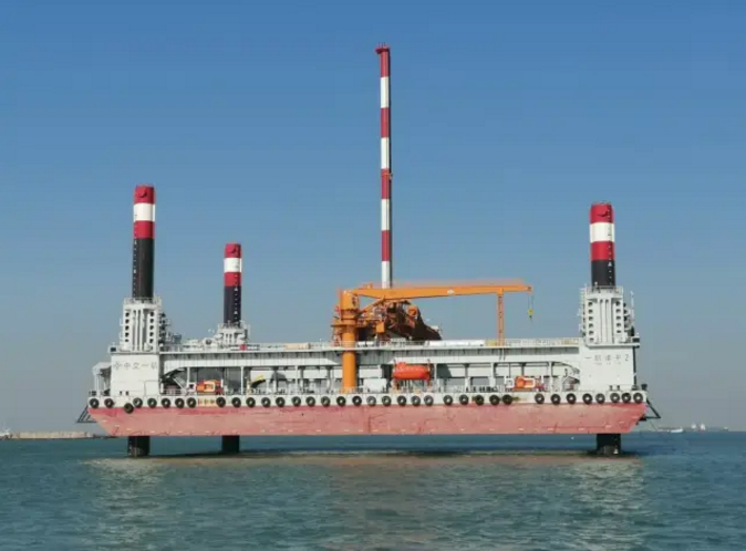 ????在沉管管節(jié)安放前,需要對基槽進行碎石整平。由中國船舶集團旗下上海船院研發(fā)設計的自升平臺式碎石鋪設整平船“一航津平2”號上場。該船集基準定位、石料輸送、高精度鋪設整平、質量檢測驗收功能于一體,被譽為深水碎石鋪設的“3D打印機”。