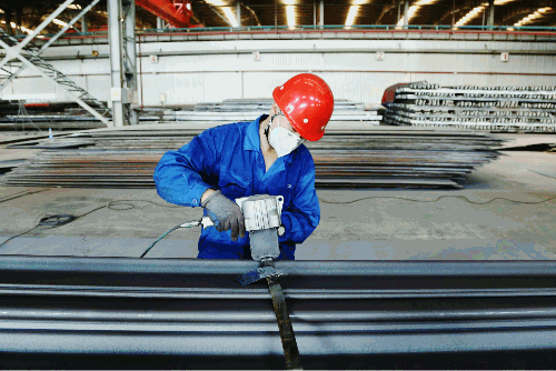 物資公司下屬鞍山公司預處理車間現(xiàn)場,中午最高可達40°C,工作人員正在進行型材預處理作業(yè),保質(zhì)保量完成物資供應。