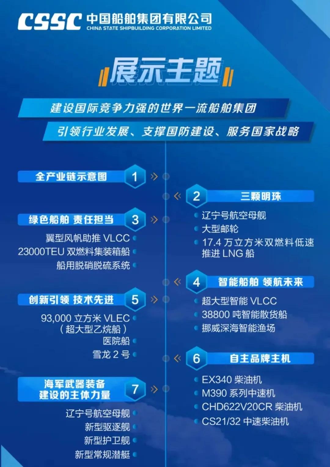 船舶海工裝備產(chǎn)業(yè)展區(qū) 分為船舶與海洋工程、船舶配套2個(gè)大區(qū),整體展示了中國(guó)船舶集團(tuán)強(qiáng)大的船舶建造能力。船舶與海洋工程分為海洋運(yùn)輸與工程裝備,海洋資源開(kāi)發(fā)、海洋科考裝備,海洋漁業(yè),新開(kāi)發(fā)船型與船舶改裝等六大板塊;船舶配套區(qū)包括動(dòng)力與配套、機(jī)電裝備和電子信息裝備3大部分,共展出模型及實(shí)物68個(gè),重點(diǎn)聚焦自主品牌、系列化產(chǎn)品及國(guó)際領(lǐng)先產(chǎn)品,展示了中國(guó)船舶集團(tuán)在業(yè)界最為完整齊全的船舶動(dòng)力機(jī)電配套產(chǎn)業(yè)鏈,具備提供穩(wěn)定、可靠的全動(dòng)力和配套解決方案的能力。