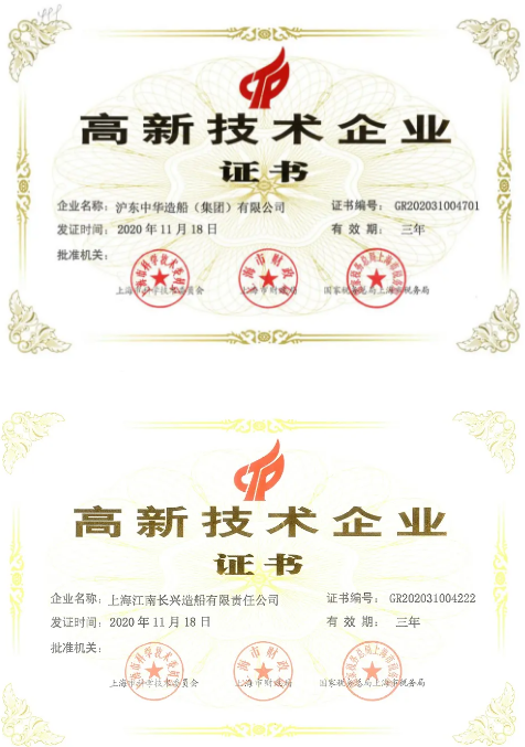 日前,中國船舶集團(tuán)旗下滬東中華及其控股公司上海江南長興造船有限責(zé)任公司雙雙收到了由上海市科學(xué)技術(shù)委員會(huì)、上海市財(cái)政局、國家稅務(wù)總局上海市稅務(wù)局聯(lián)合頒發(fā)的高新技術(shù)企業(yè)證書。