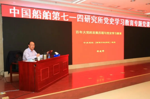 七一四所黨委開(kāi)設(shè)黨史專題讀書(shū)班,領(lǐng)導(dǎo)班子成員結(jié)合工作實(shí)際、領(lǐng)學(xué)解讀規(guī)定書(shū)目的重點(diǎn)篇章,讀原著、學(xué)原文、悟原理;邀請(qǐng)中央宣講團(tuán)成員、中央黨校原副教育長(zhǎng)、教務(wù)部主任柳建輝作宣講報(bào)告;組織開(kāi)展“我看建黨百年新成就”主題調(diào)研活動(dòng),所老專家、老干部以耳聞目見(jiàn)、親身經(jīng)歷講黨史、講船舶發(fā)展史,帶動(dòng)黨員特別是青年員工進(jìn)一步堅(jiān)定理想信念,矢志不渝奮斗;各黨支部紛紛組織專題黨課、讀書(shū)班以及沉浸式學(xué)習(xí)等活動(dòng),學(xué)史明理、學(xué)史增信、學(xué)史崇德、學(xué)史力行。