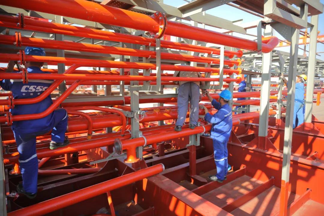中船動力集團所屬中船三井生產(chǎn)現(xiàn)場井然有序,干部職工干勁十足。主機安裝有條不紊,加工機床飛速旋轉(zhuǎn),管件焊接按部就班,設(shè)備維保爭分奪秒……大家堅守滿足客戶需求的承諾,胸懷勇創(chuàng)優(yōu)異業(yè)績的熱忱,彰顯出中國船舶人守初心、擔(dān)使命的責(zé)任擔(dān)當(dāng)。