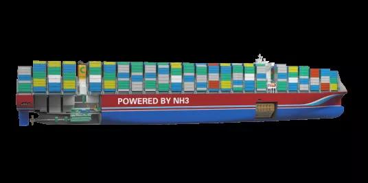 大船集團與曼恩能源方案、英國勞氏船級社(LR)共同開發(fā)了“C-FUTURE” 零碳排放23000箱超大型集裝箱船。LR頒發(fā)了AIP證書。該船型率先提出“C-FUTURE”概念,創(chuàng)新性的采用液氨為動力燃料,實現(xiàn)船舶零碳排放;曼恩最新研發(fā)的液氨燃料主機和大船集團自主研發(fā)的燃料供應系統(tǒng),匹配大型可調螺距螺旋槳,配合軸帶發(fā)電機,提供船舶推進動力和電力供應;常壓、低溫、低蒸發(fā)率、高艙容利用率的A型燃料艙,為船舶提供了充沛續(xù)航。