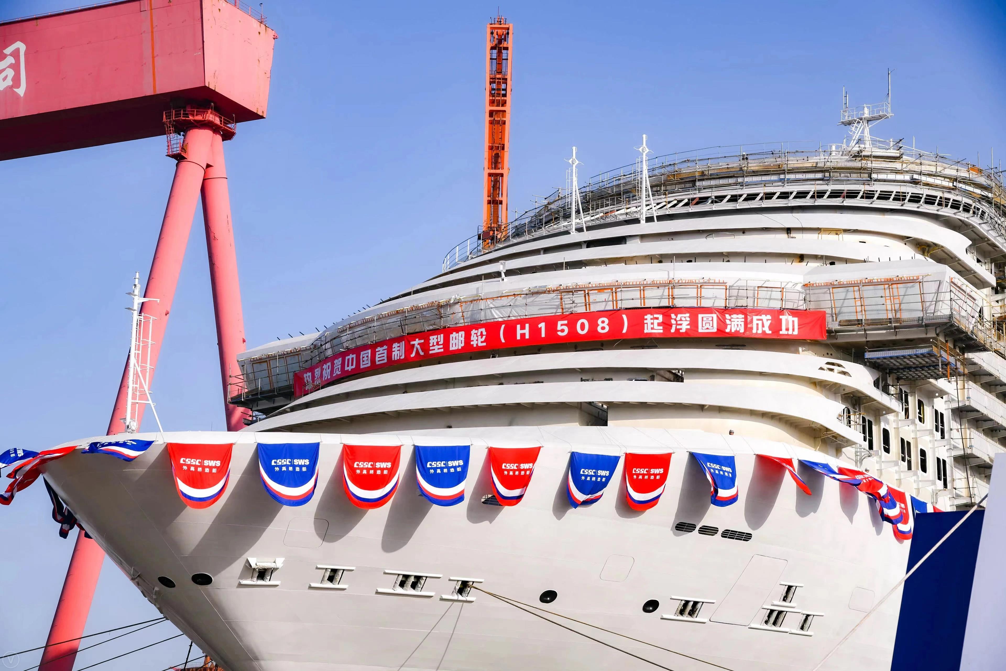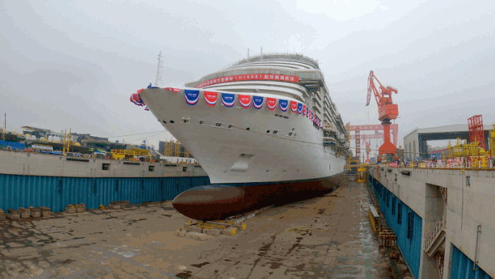 2021年12月17日,由中國(guó)船舶集團(tuán)旗下外高橋造船建造的中國(guó)首制大型郵輪順利實(shí)現(xiàn)塢內(nèi)首次起浮里程碑節(jié)點(diǎn),宣告結(jié)構(gòu)和舾裝建造的“上半場(chǎng)”圓滿收官!