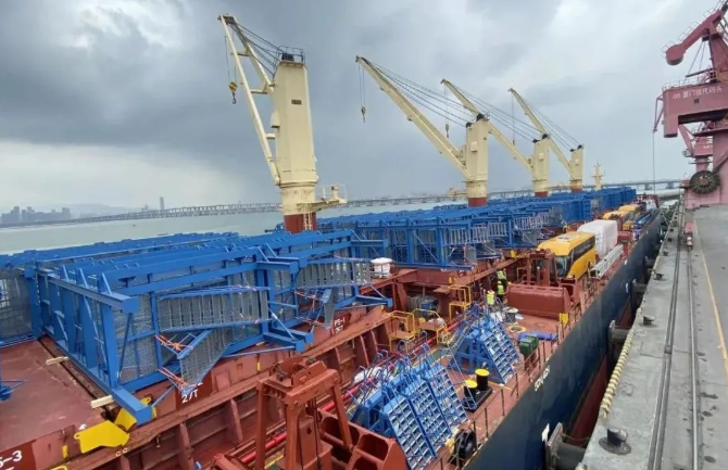 登船塔等設(shè)備的明顯特點(diǎn)是單體體積大,在運(yùn)輸途中其細(xì)小構(gòu)件易變形。此類設(shè)備作為首次出口沒(méi)有任何經(jīng)驗(yàn)可循,從制造廠到國(guó)際運(yùn)輸碼頭的短駁轉(zhuǎn)運(yùn)成了最大的難題。項(xiàng)目團(tuán)隊(duì)組織運(yùn)輸單位多次前往制造廠和碼頭進(jìn)行考察,與運(yùn)輸單位、交管部門(mén)、國(guó)際運(yùn)輸碼頭等多個(gè)部門(mén)密切溝通,研究確定了陸路短駁運(yùn)輸方案,確保萬(wàn)無(wú)一失。