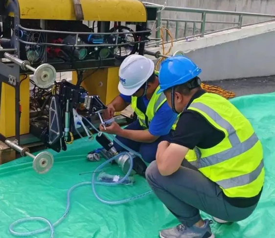 項(xiàng)目組成員克服高溫高濕的環(huán)境和艱苦條件,歷時(shí)近十天圓滿完成有關(guān)試驗(yàn)任務(wù)。本次外場(chǎng)試驗(yàn),充分驗(yàn)證并優(yōu)化了七〇二所在水下工程領(lǐng)域的核心技術(shù),包括水下裂縫檢測(cè)、水下裂縫修復(fù)、水下嵌填、水工建筑物表面清理及水下插拔等關(guān)鍵技術(shù)的實(shí)際應(yīng)用效果與操作效率。