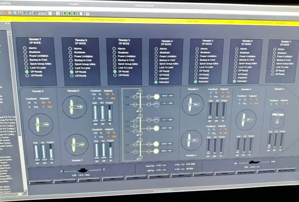 “夢(mèng)想”號(hào)在全球首次同時(shí)將蓄能技術(shù)和閉環(huán)電網(wǎng)應(yīng)用于DP-3級(jí)動(dòng)力定位系統(tǒng),不僅能為海上鉆探作業(yè)提供強(qiáng)有力的保障,而且使全船綜合能耗降低15%。