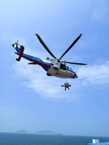 4月30日12時(shí)許,在中船集團(tuán)旗下廣船國(guó)際G1172船海試期間,一名參試員工突發(fā)急性消化道出血,出血量達(dá)400毫升,面色蒼白、血壓持續(xù)走低、心率持續(xù)攀升、意識(shí)逐漸模糊,并出現(xiàn)休克前兆,若無法在黃金救治期內(nèi)送醫(yī)救治,隨時(shí)可能危及生命。海上常規(guī)救援方案需要調(diào)用拖輪或快艇轉(zhuǎn)運(yùn)陸上醫(yī)院,耗時(shí)長(zhǎng)且海上顛簸可能進(jìn)一步加劇出血風(fēng)險(xiǎn)。時(shí)間刻不容緩,常規(guī)救援已經(jīng)來不及了。