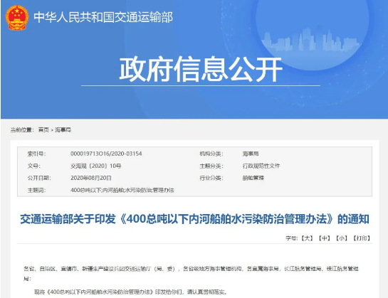 該《辦法》共包含七個章節(jié),旨在防治內河船舶污染水域環(huán)境,涉及“生活污水污染防治”“船舶垃圾污染防治”“機器處所油污水污染防治”“洗艙水污染防治”等內容。