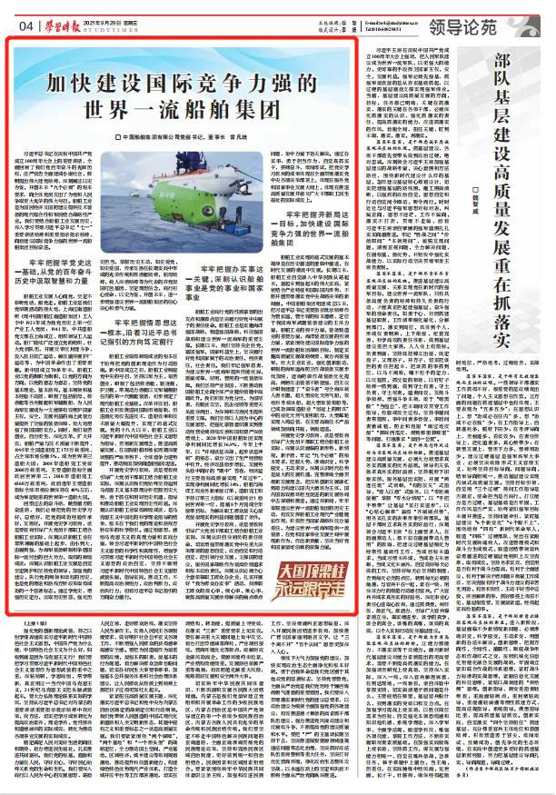9月29日,《學(xué)習(xí)時報》刊發(fā)中國船舶集團(tuán)黨組書記、董事長雷凡培署名文章《加快建設(shè)國際競爭力強的世界一流船舶集團(tuán)》,現(xiàn)全文分享如下。