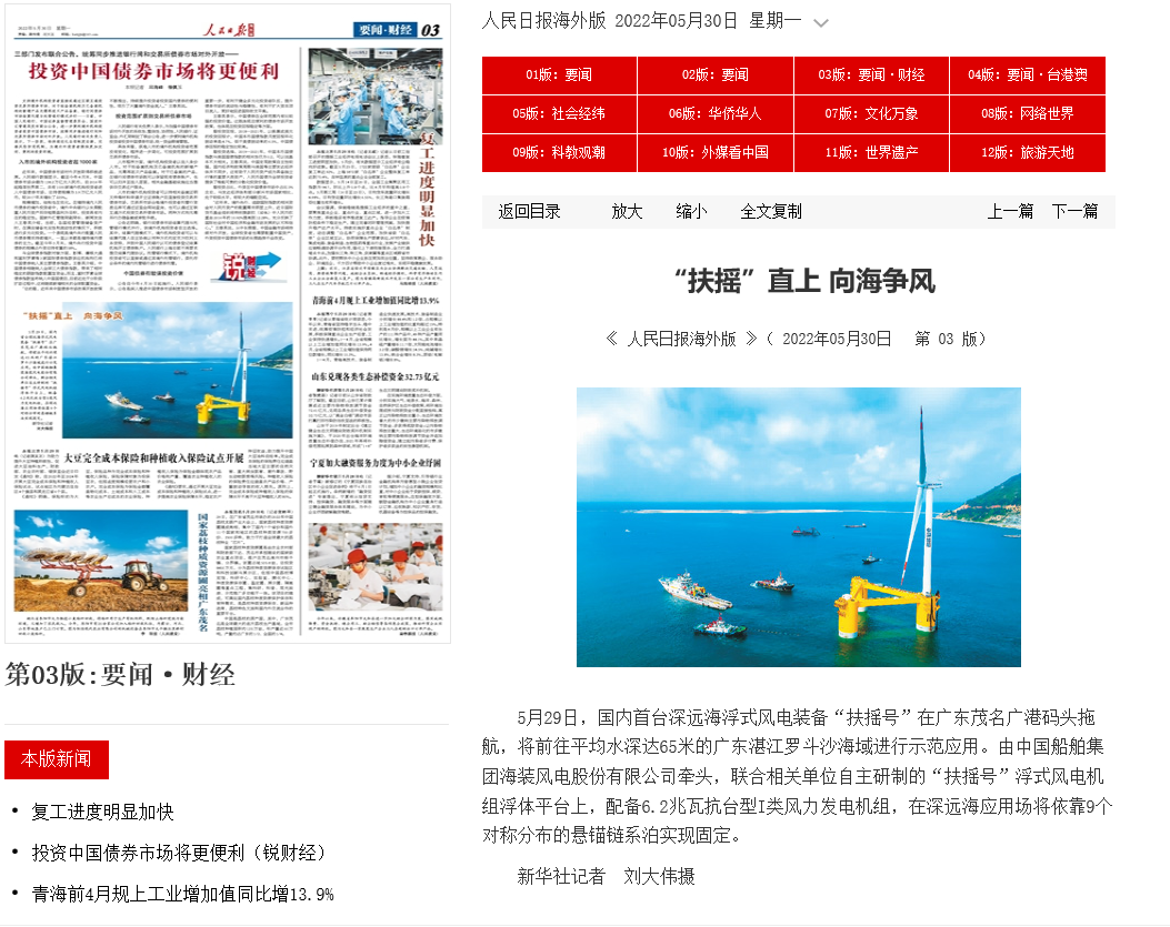 這是“扶搖號(hào)”繼機(jī)組、浮體下線后,再次取得的又一里程碑成果,將對(duì)我國(guó)海上風(fēng)電邁向深遠(yuǎn)海,助力“30·60”雙碳目標(biāo)達(dá)成產(chǎn)生重大意義。
