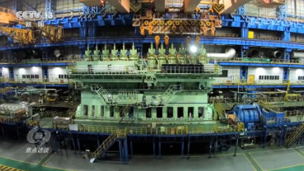 邵煜:“一個(gè)氣缸套的重量將近20噸,而氣缸套上面還組裝有氣缸蓋、排氣閥、噴油器等一系列組件,加起來(lái)大約就有一百多個(gè)?!?