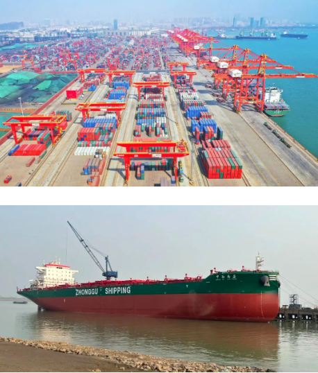 在公開照片中,與習(xí)近平總書記“同框”的,正是中國船舶集團(tuán)旗下武漢船機(jī)、七一六所參與建設(shè)的日照港順岸開放式全自動(dòng)化集裝箱碼頭,以及上船院設(shè)計(jì)、汾西重工提供關(guān)鍵配套的4600箱集裝箱船“中谷南昌”號。