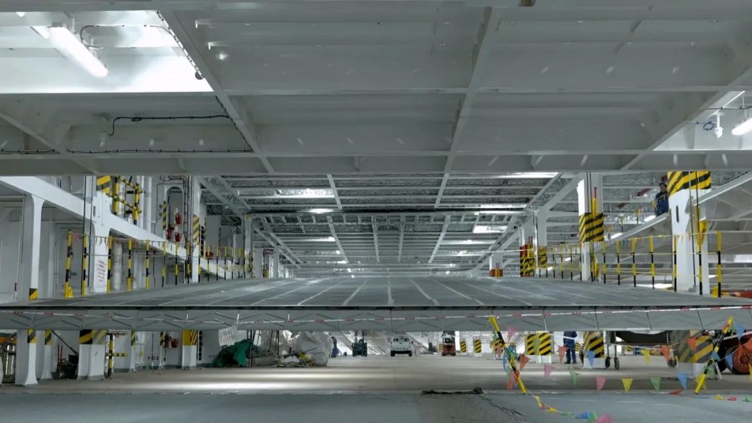 中國船舶廣船國際建造在近年來,致力研發(fā)、攻堅(jiān)克難,2024年成功完工交付了12艘雙燃料汽車運(yùn)輸船。這種大型滾輪船總長約200米,型寬38米,擁有12層甲板, 能裝載7000輛汽車,體型可以稱得上是“海上霸王”。但它的特點(diǎn)可不僅僅是能“裝”,還有適配運(yùn)輸新能源汽車的獨(dú)特巧思。