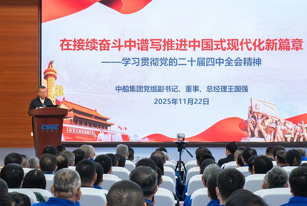 黨組成員在宣講會上強調(diào),學(xué)習(xí)好貫徹好黨的二十屆四中全會精神是當(dāng)前和今后一個時期的重大政治任務(wù)。要更加緊密地團(tuán)結(jié)在以習(xí)近平同志為核心的黨中央周圍,全面貫徹習(xí)近平新時代中國特色社會主義思想,把思想和行動統(tǒng)一到黨中央對形勢的科學(xué)判斷和決策部署上來,狠抓各項工作落實。要堅持創(chuàng)新驅(qū)動,抓住新一輪科技革命和產(chǎn)業(yè)變革歷史機遇,加快推進(jìn)高水平科技自立自強;要加快提質(zhì)升級,堅持智能化、綠色化、融合化方向,爭當(dāng)建設(shè)現(xiàn)代化產(chǎn)業(yè)體系的排頭兵;要全面深化改革,進(jìn)一步解決制約高質(zhì)量發(fā)展的卡點堵點問題,持續(xù)增強發(fā)展動力和活力;要強化根魂優(yōu)勢,堅持和加強黨的領(lǐng)導(dǎo)、黨的建設(shè),以高質(zhì)量黨建引領(lǐng)保障高質(zhì)量發(fā)展,確保2025年和“十四五”規(guī)劃目標(biāo)任務(wù)完成、“十五五”良好開局,為以中國式現(xiàn)代化全面推進(jìn)強國建設(shè)、民族復(fù)興偉業(yè)貢獻(xiàn)中船力量。