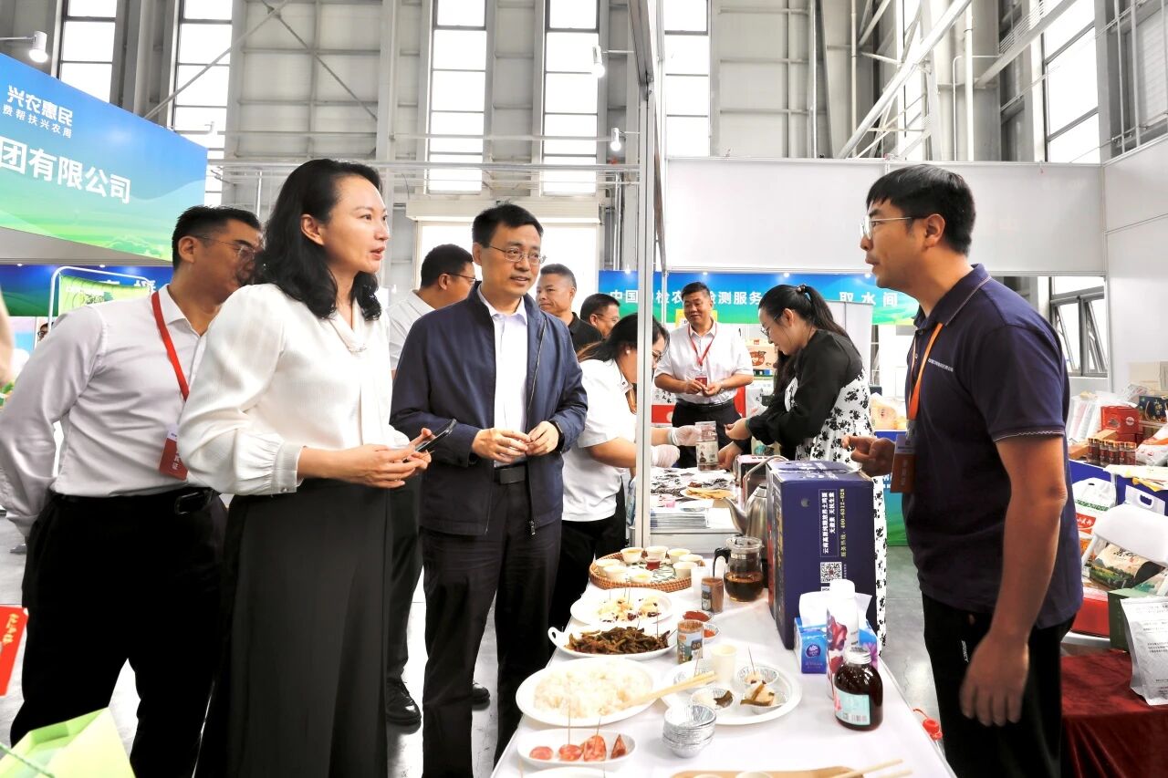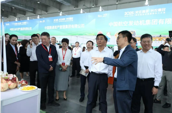 國務院國資委秘書長莊樹新、國務院國資委社會責任局局長李軍、農業(yè)農村部區(qū)域協(xié)作促進司(革命老區(qū)工作辦公室)司長(主任)李富君等領導來到中船集團展區(qū),詢問了解集團公司定點幫扶的進展情況及特色農產品相關信息。