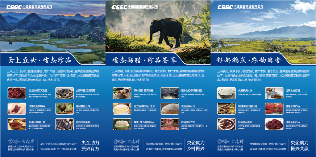 百家央企聚合力,消費幫扶促振興。中船集團積極響應國家號召,自2018年起持續(xù)對云南鶴慶、丘北、勐臘三縣開展消費幫扶,通過“以購代扶、以銷促產”的有效路徑,走出了鄉(xiāng)村振興的堅實步伐。同時,中船集團以“中船集團電子商城”“中船·惠民優(yōu)選”線上平臺為依托,充分挖掘并推廣三個幫扶縣特色農產品資源,系統(tǒng)推進消費幫扶工作落地落實。
