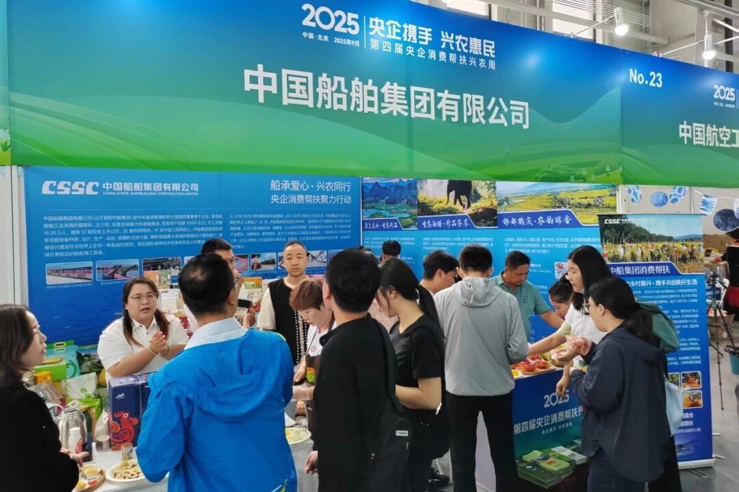 9月19日,以“央企攜手,興農惠民”為主題的第四屆“央企消費幫扶興農周”活動在北京正式啟動。中國船舶集團有限公司在同期舉行的特色農產品展銷會上精心布置了特色展區(qū),現場展銷來自其定點幫扶的鶴慶、勐臘、丘北三縣的110款優(yōu)質特色農產品。